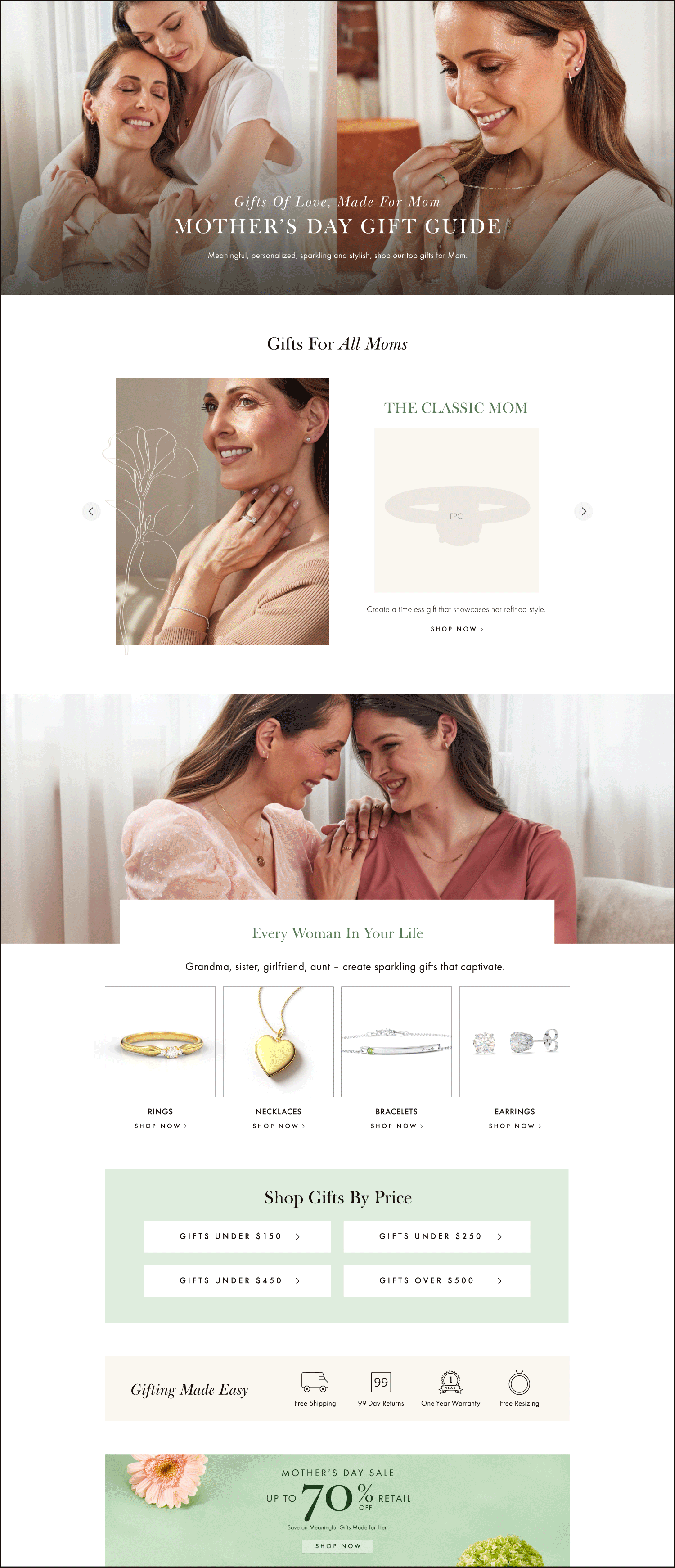 The final creative reflects iterations from emphasizing the emotive aspects of Mother's Day Sale to amplifying the sale message.