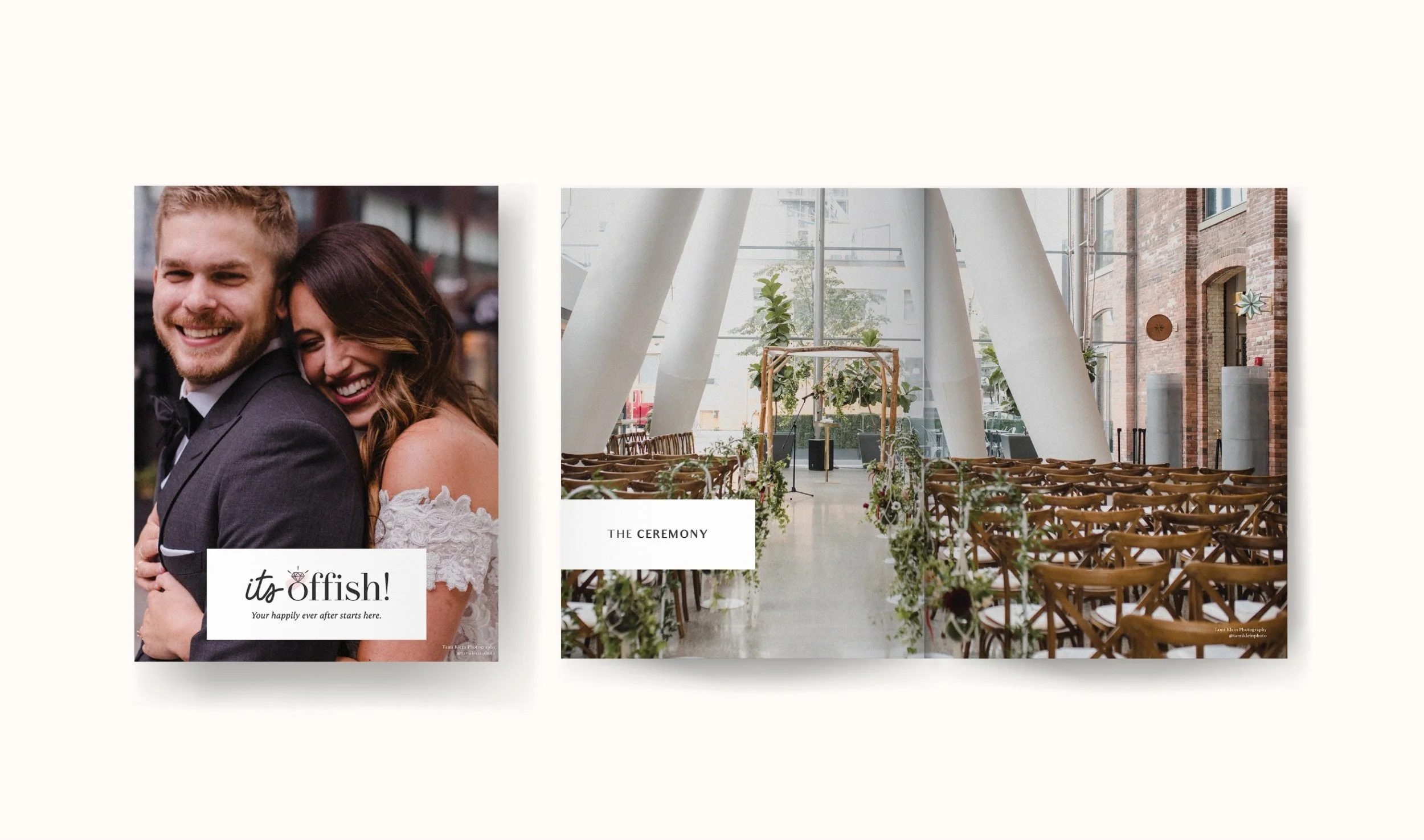 Itsoffish is a brand that specializes in personalized signage, favours, and stationery for weddings and celebratory events, including signing boards and menus. Through a diverse selection of materials, textures, and colour options, Itsoffish adds a personal touch to elevate every celebration. I collaborated with the creative team to develop the brand's logo and was the lead designer for the product catalogue which showcases the brand's product range, customization options, and their applications.