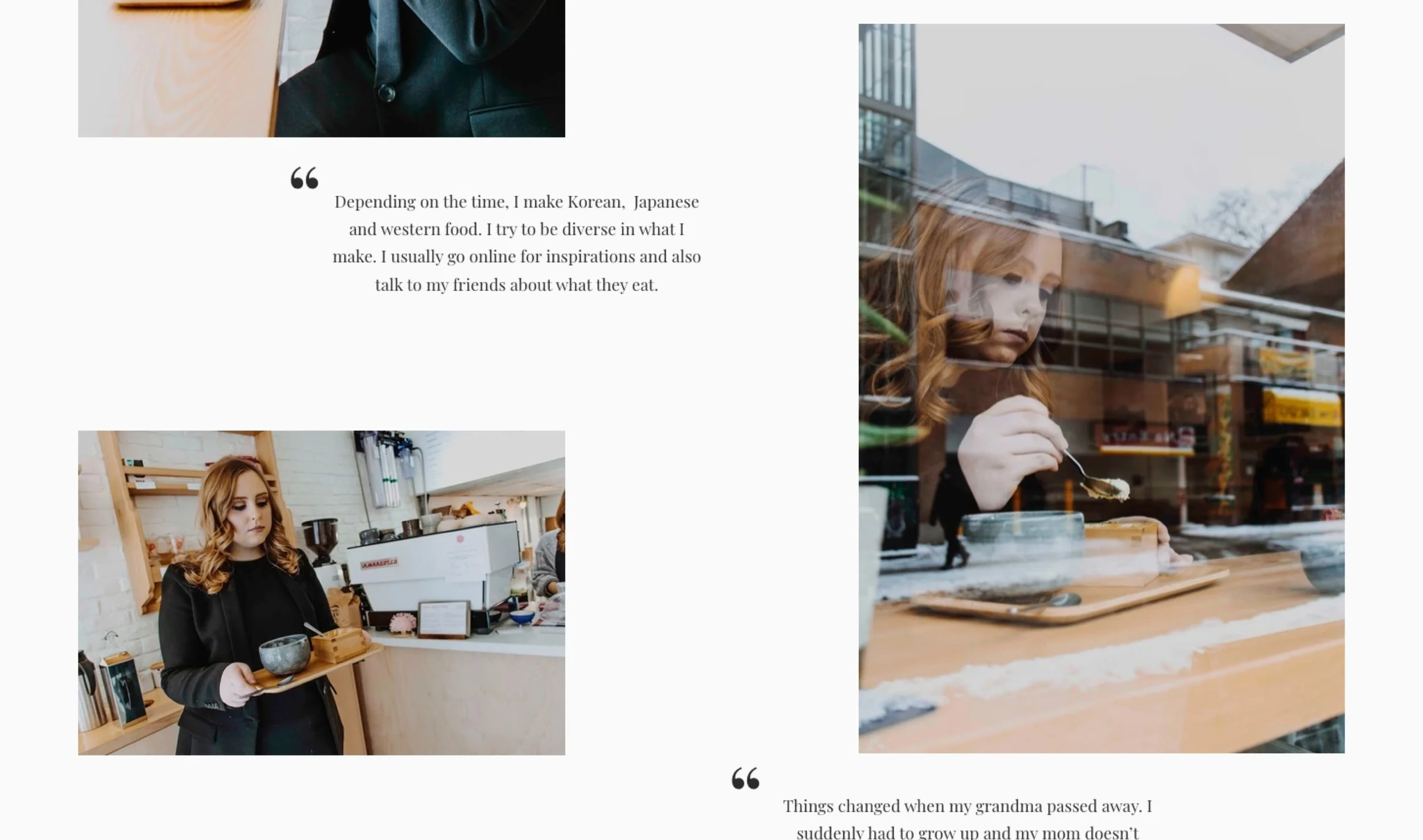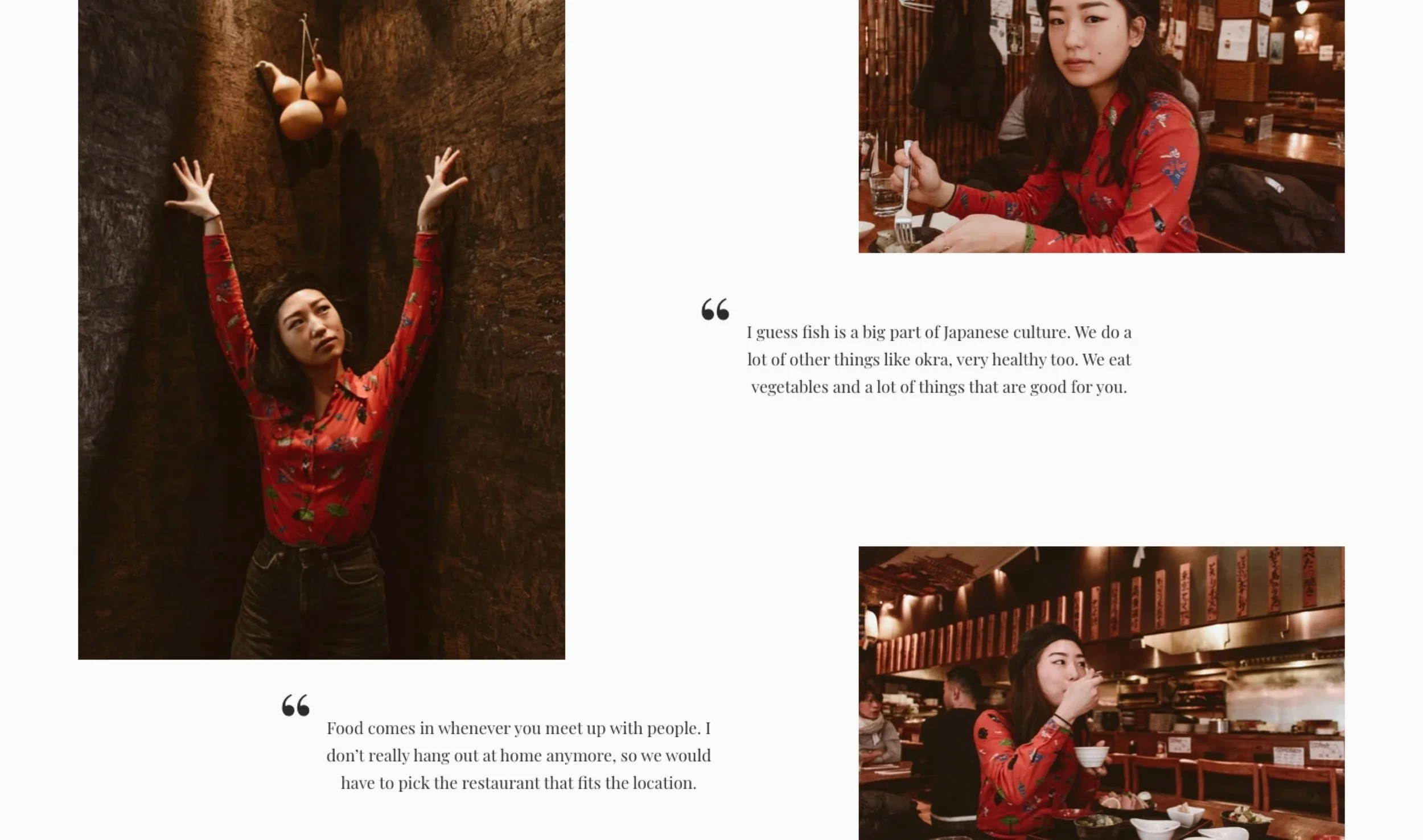 A digital extension of the book was created in the form of a website, offering a snapshot of the interviewed female Millennials' stories. The fun, candid portraitures explore ways that photography can be used to empower the models and authentically communicate their experiences with food.